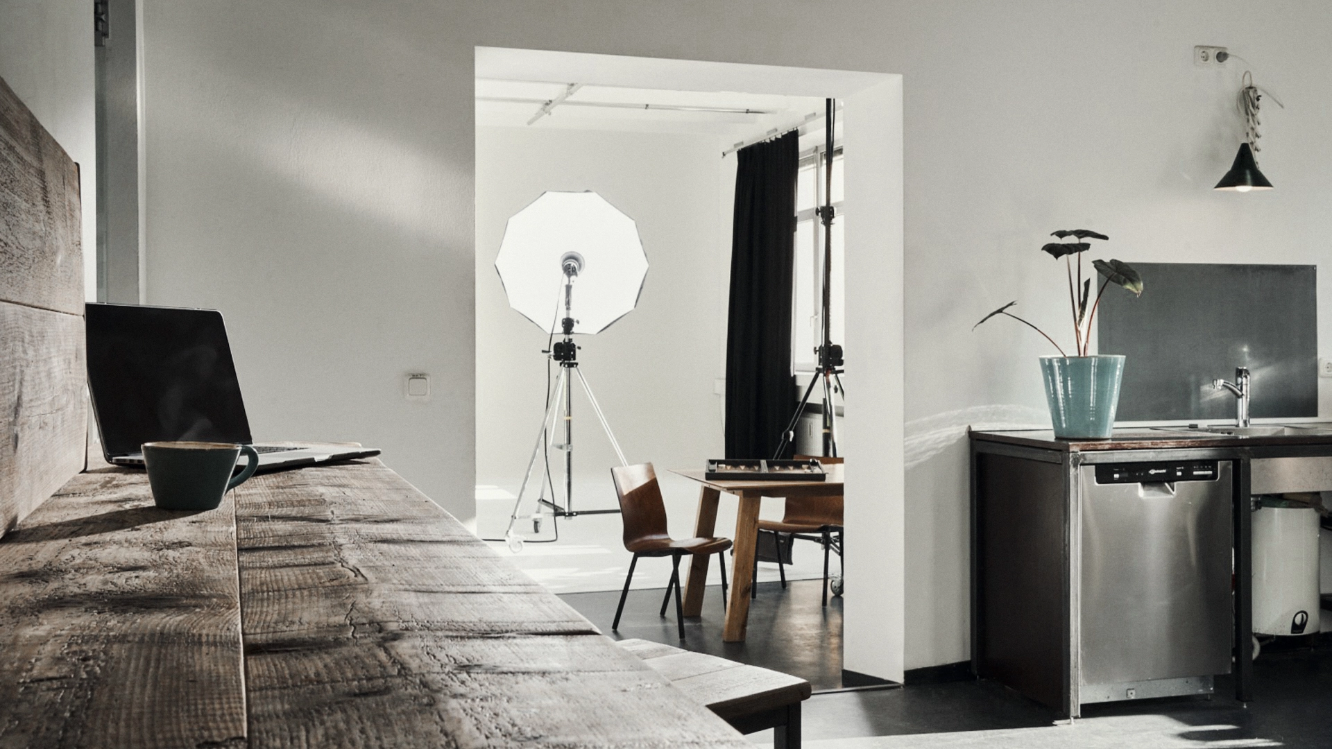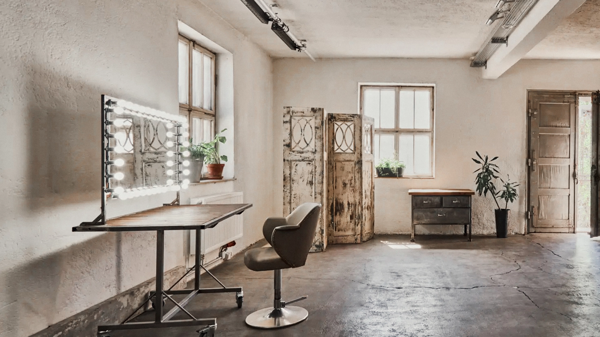 Studio 3 is a bright daylight studio with a residential-style atmosphere, featuring a kitchenette and a comfortable seating area. With a ceiling height of 3.60 m and a 100 m² layout, the space is perfect for food and living productions as well as workshops and smaller events. The studio can be fully darkened, offers exterior lighting options and is equipped with 16A and 32A high-voltage power connections, making it highly flexible for both photo and film setups. A separate daylight make-up room is available, and a professional styling area can be arranged on request or combined with Studio 4 for additional space. High-speed Wi-Fi, a freight elevator, parking spaces and a dedicated loading zone ensure smooth logistics for every production. Studio 3 delivers a warm, modern and functional environment for creative work of all kinds.