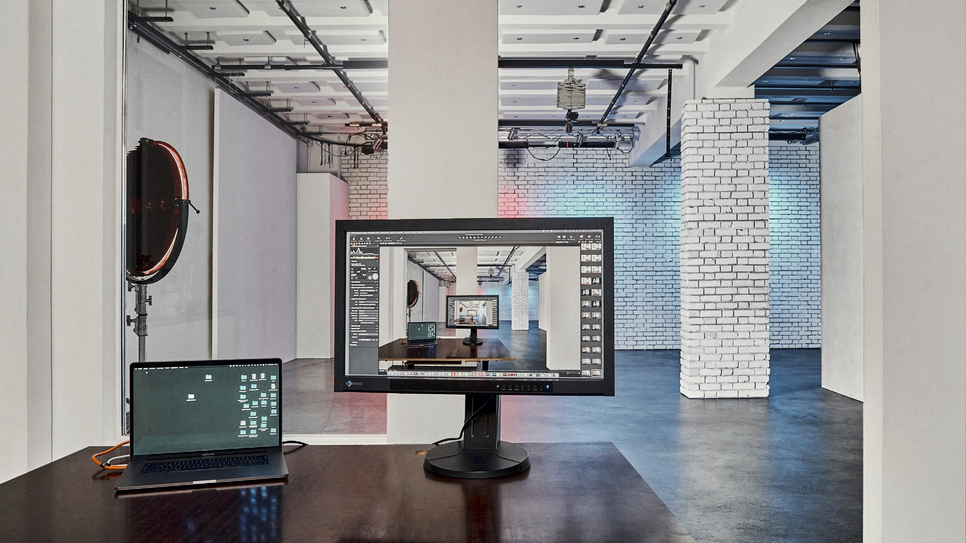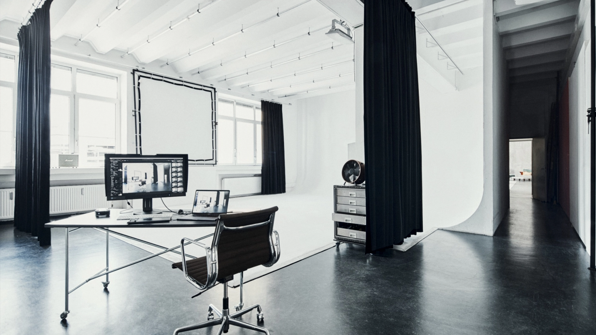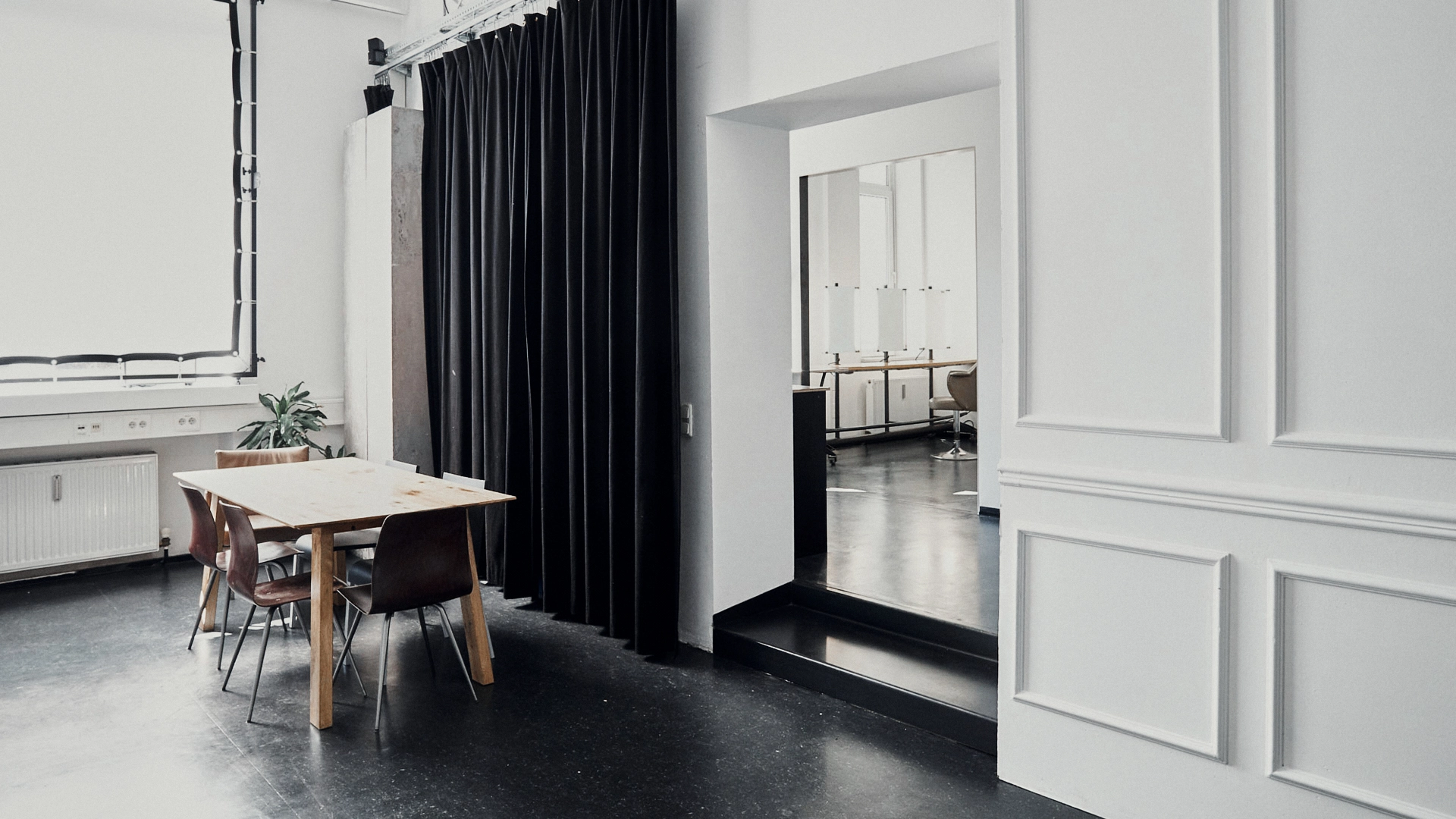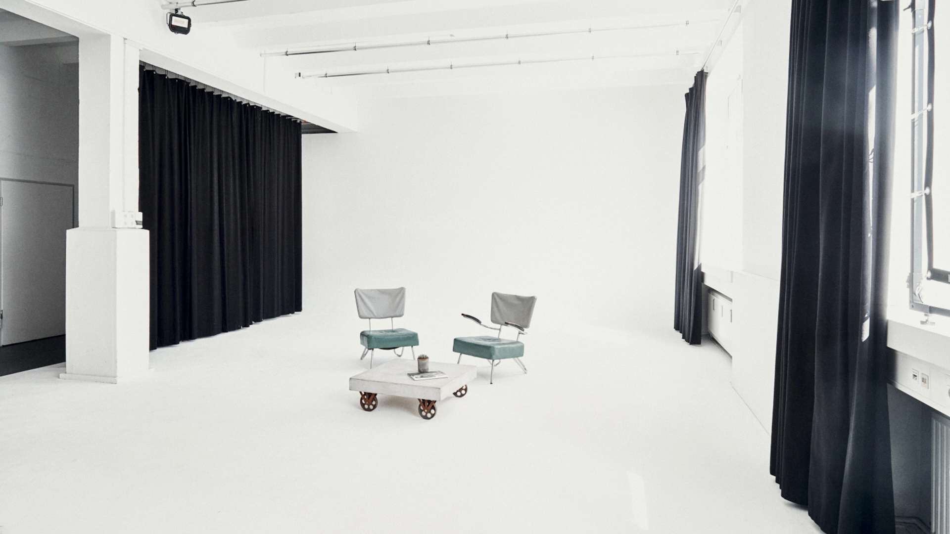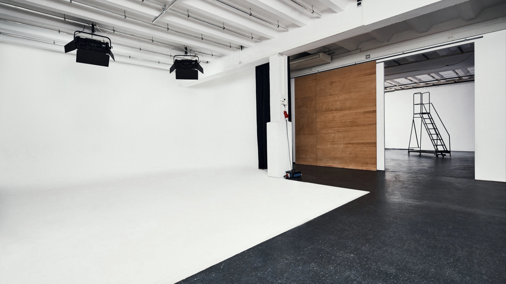 Studio1 is a bright south-facing daylight studio that can also be fully darkened when needed. With a 4 m ceiling height, a 100 m² open layout and a spacious cyclorama, it offers an ideal setup for both photo and film productions. The studio provides strong power connections, a ceiling rail system and air conditioning to support professional workflows. A dedicated make-up and styling area is available, making Studio 1 a versatile and well-equipped space for modern creative productions.