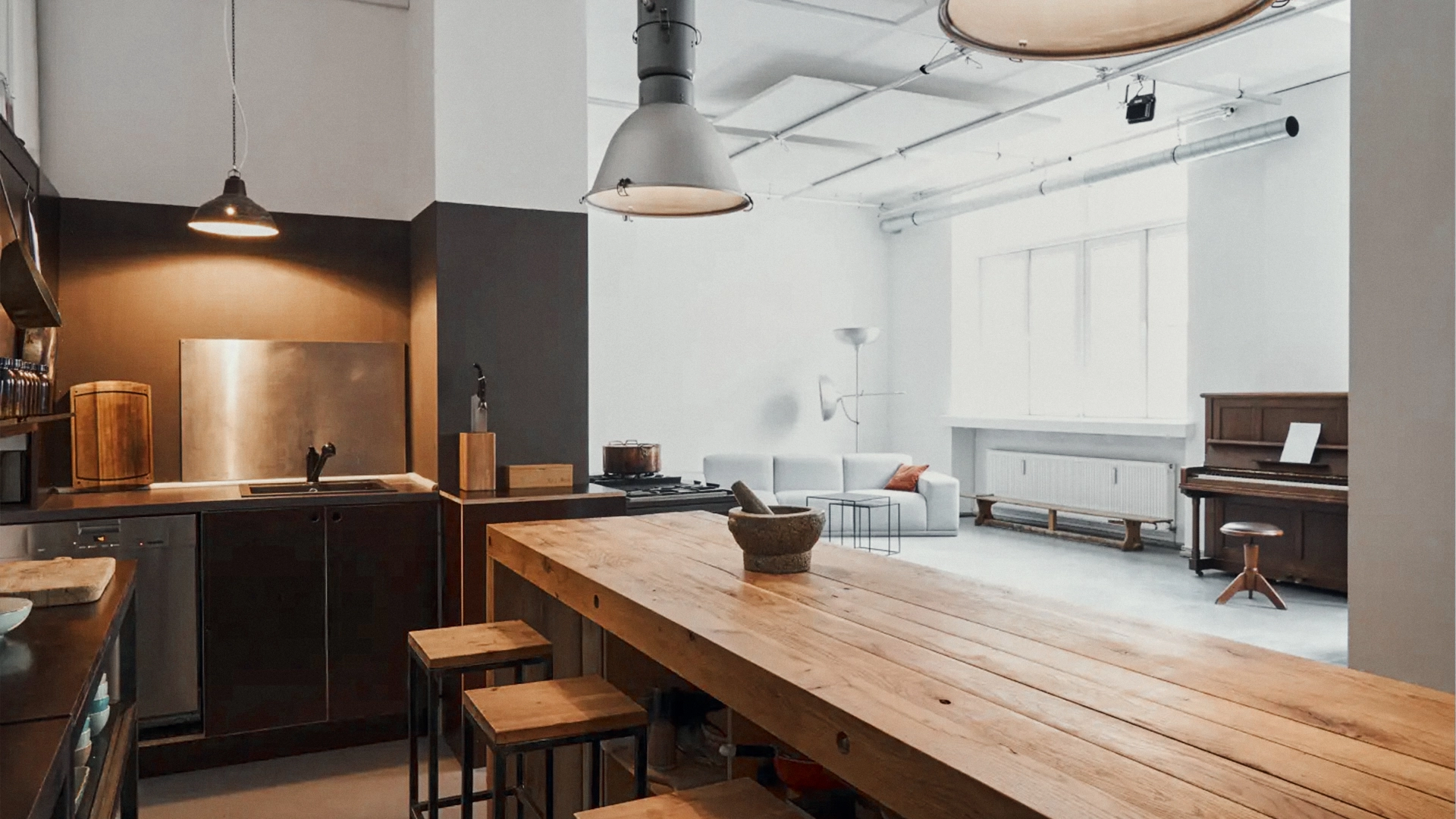 The Loft is a spacious industrial-style space offering 300 m² of open layout, expandable to 410 m² when combined with Studio 2. With a ceiling height of 3.30 m, a flexible ceiling rail system and strong 32A and 63A power connections, it provides the perfect environment for photo and film productions, events, workshops and seminars. The Loft can be fully darkened, supports exterior lighting and is suitable for original sound recording with prior notice. The authentic industrial character, high-quality interior and optional vintage furniture create a unique atmosphere for creative and commercial projects. A professional catering kitchen is available on request, making the Loft ideal for productions with larger teams or live events. Additional features such as high-speed Wi-Fi, a freight elevator, parking spaces and a dedicated loading zone ensure smooth logistics and an efficient workflow.